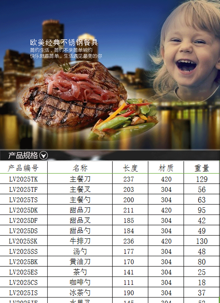 酒店用西餐餐餐具套装 牛排刀叉 不锈钢刀叉系列 LV2025